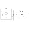 Мойка имеет компактные размеры 480 x 430 мм и R10 радиус закругления. Внутренние углы также, с R10 радиусом закругления.