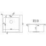 Мойка имеет размеры 510 x 510 мм и R10 радиус закругления. Внутренние углы также, с R10 радиусом закругления.