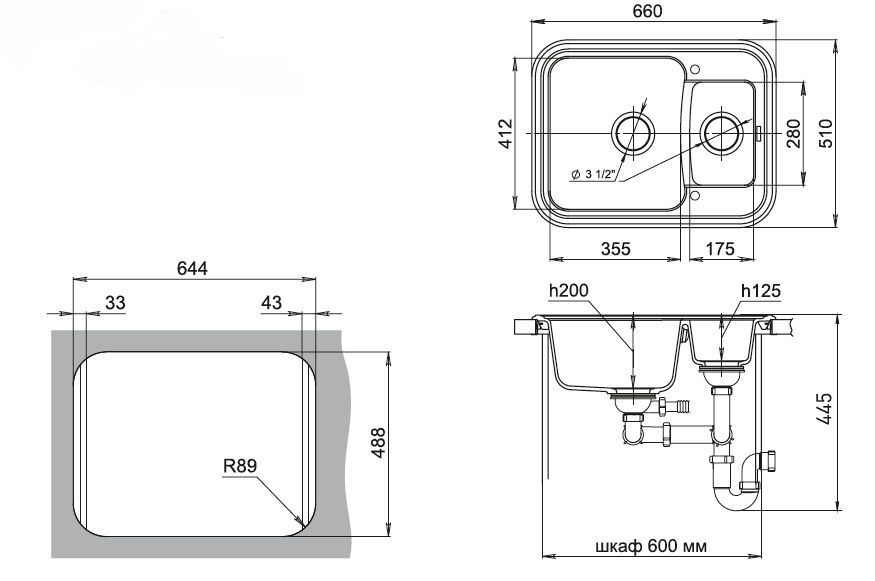 Размеры чаш: 412х355х200 мм / 280x175х125 мм