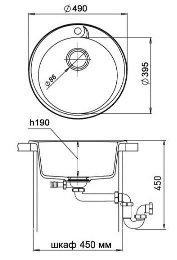 Комплектация: шаблон, крепежи, силиконовый клей, сифон
