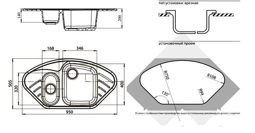 Размеры чаш: 400х346х185 мм, 320х168х130 мм