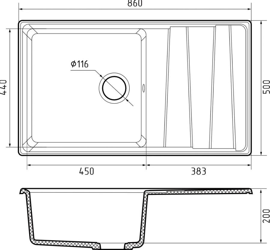 Общий размер: 860х500x200 мм