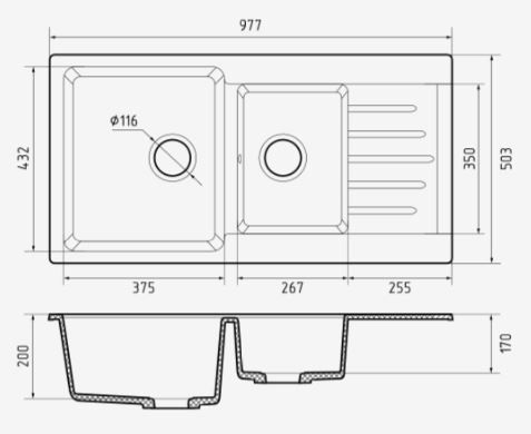 Размеры чаш: 432х375х191 мм, 267х350х160 мм