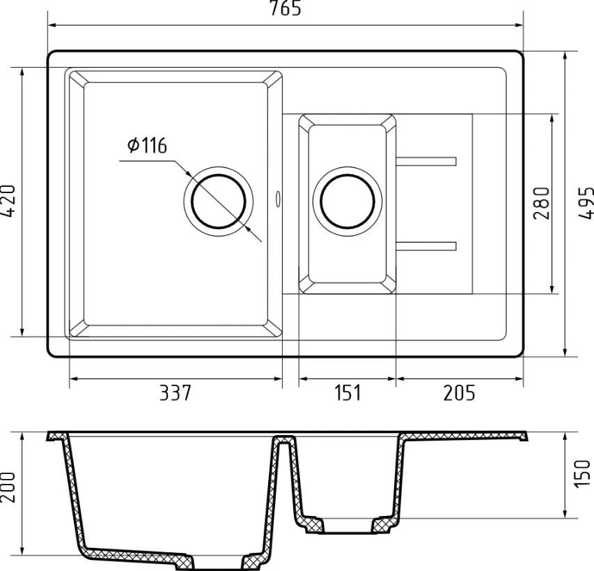 Размеры чаш: 420х337х195 мм, 280х151х145 мм