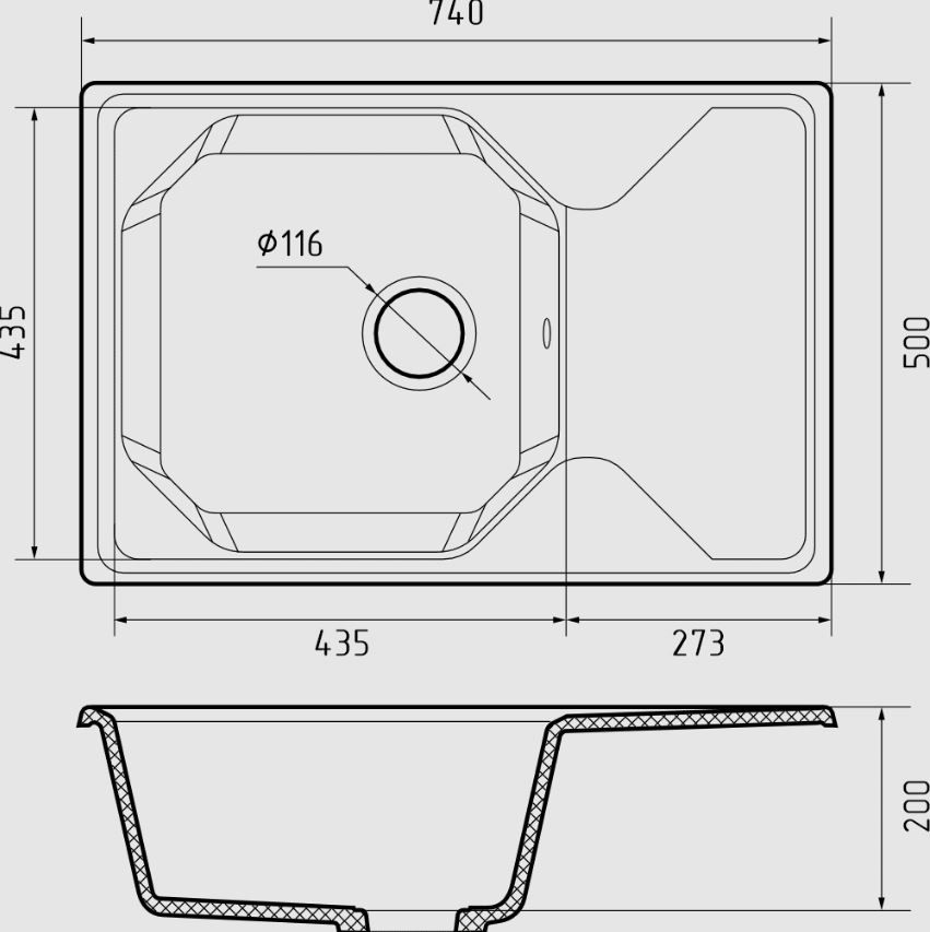 Общий размер: 740х500x200 мм