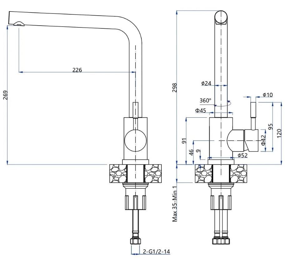 Форма: Смеситель Г-образный