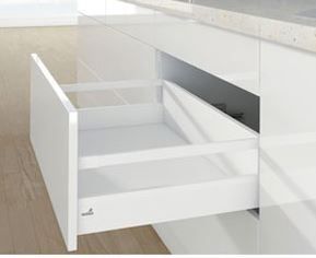 Фасадный ящик InnoTech Atira полного выдвижения с демпфером Silent System, H144, NL300, с релингом, под саморез, цвет белый, (V1)
