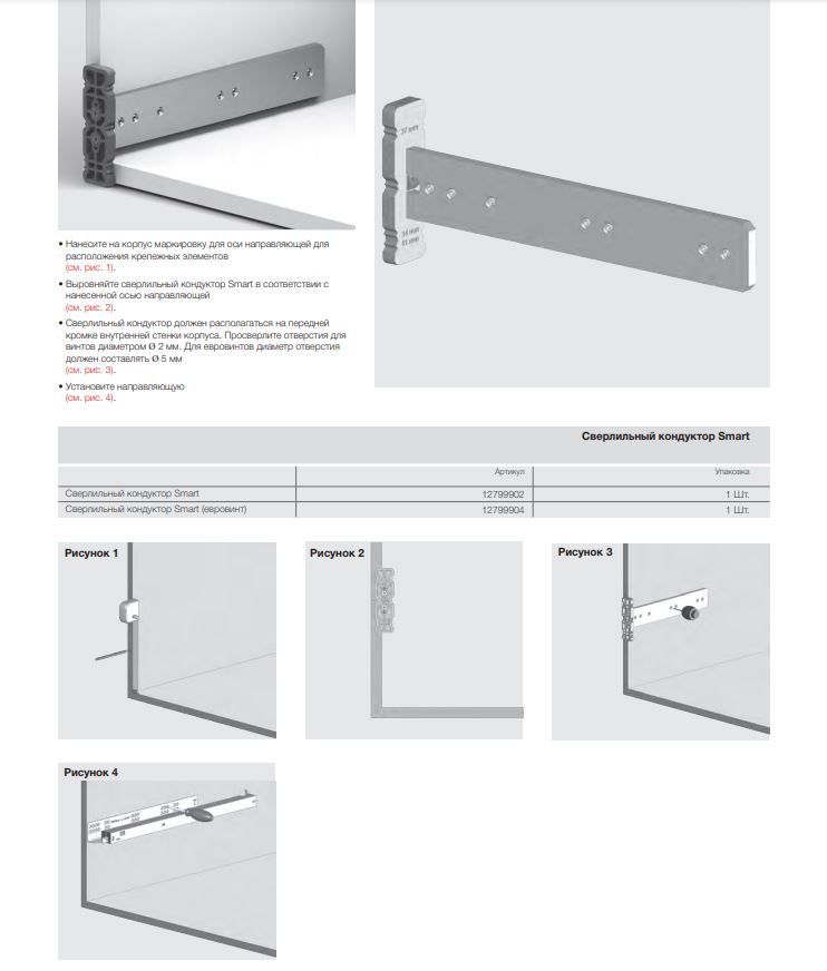 • Выровняйте сверлильный кондуктор Smart в соответствии с