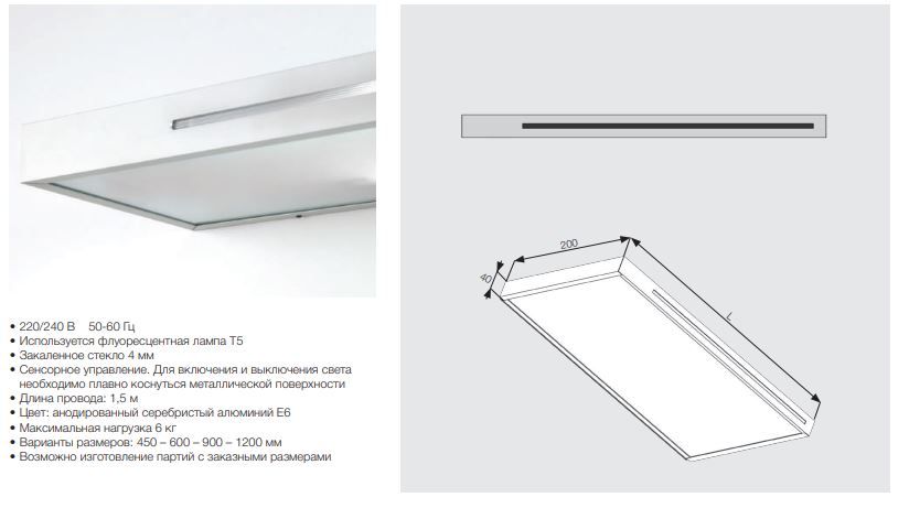 SAMET Встраиваемая полка SL-KD, 600х200х40 мм, LED холодный белый