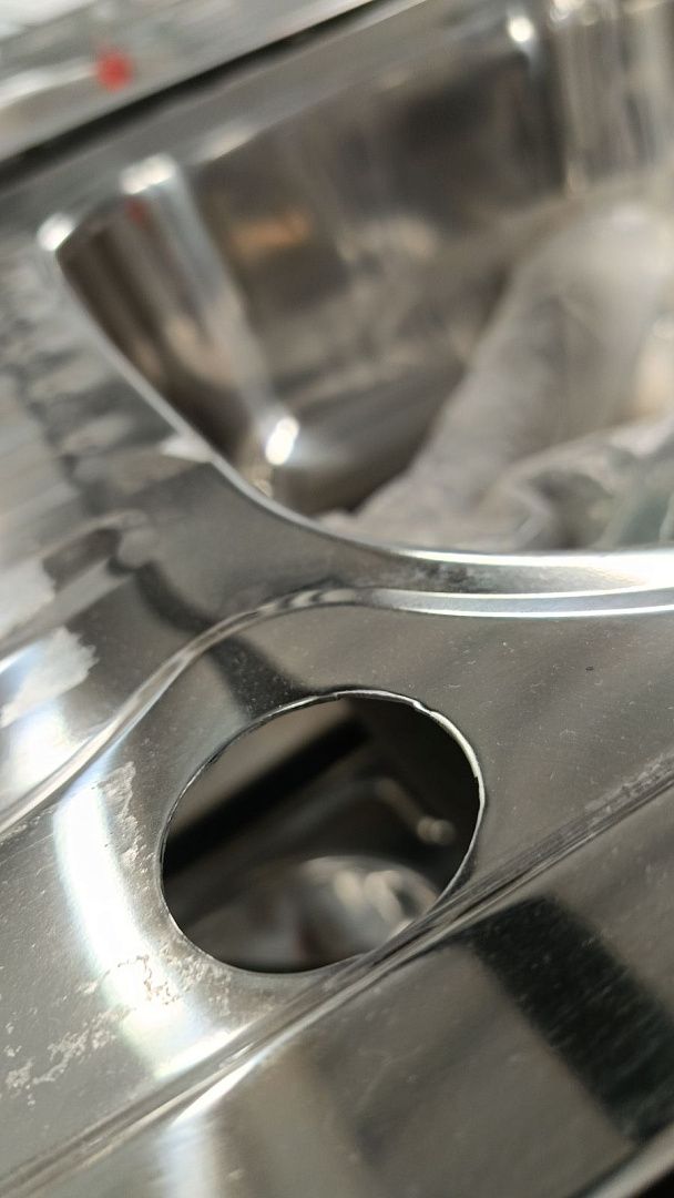 Причина уценки: отверстие под смеситель близко к краю мойки, потертости на корпусе