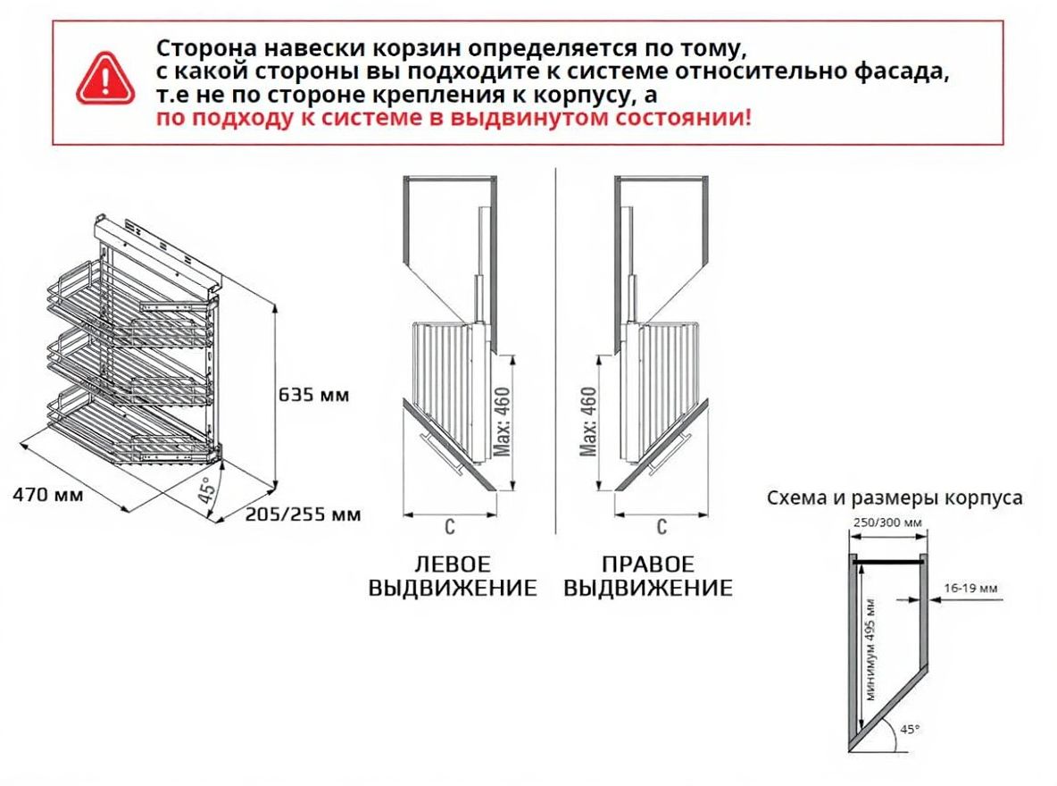 Корзина трёхуровневая с боковым креплением 45 гр.