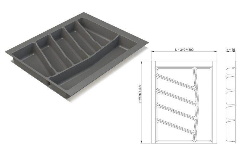 Лоток для кухонных принадлежностей для шкафа 450 мм, серый