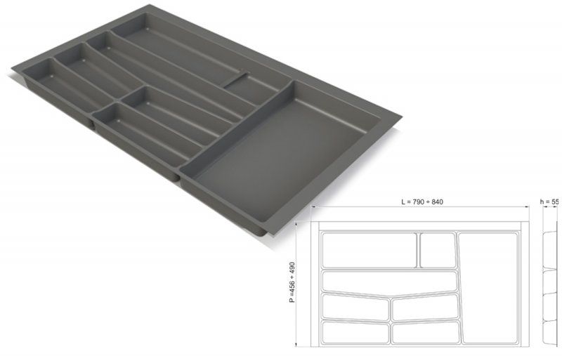 Лоток для кухонных принадлежностей для шкафа 900 мм, серый