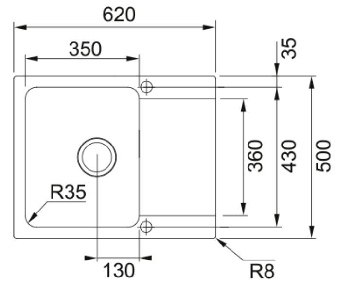 Ширина выреза: монтаж сверху 480 мм
