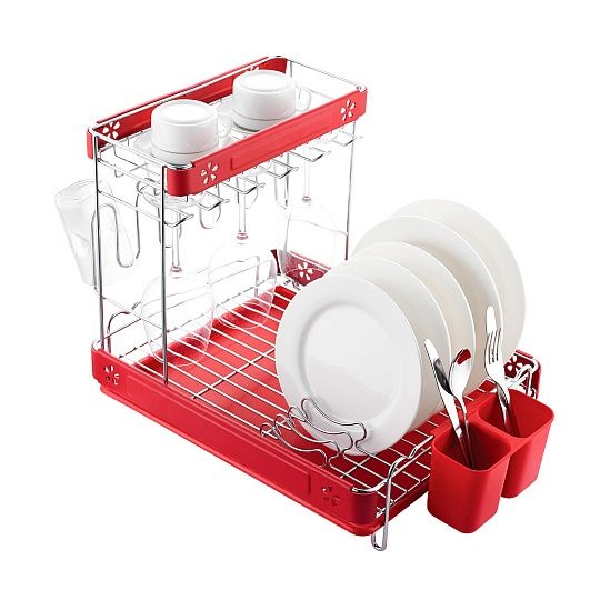 ПОСУДОСУШИТЕЛЬ НАСТОЛЬНЫЙ ДВУХЪЯРУСНЫЙ, ХРОМ,КРАСН. (517х352х384 мм)