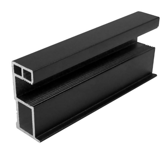 Вертикальный профиль Elephant Frog с видимой частью в виде прямоугольника шириной 13 мм — используется в качестве ручки в Раздвижной узкорамочной системе Elephant и в Навесной системе AluForce®. Высота прямоугольника, разделенного внутренней стенкой для прочности, — 6 мм (над плоскостью наполнения).