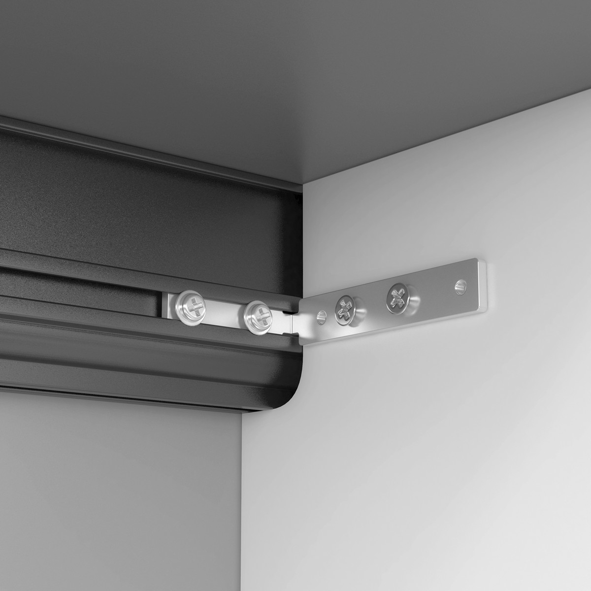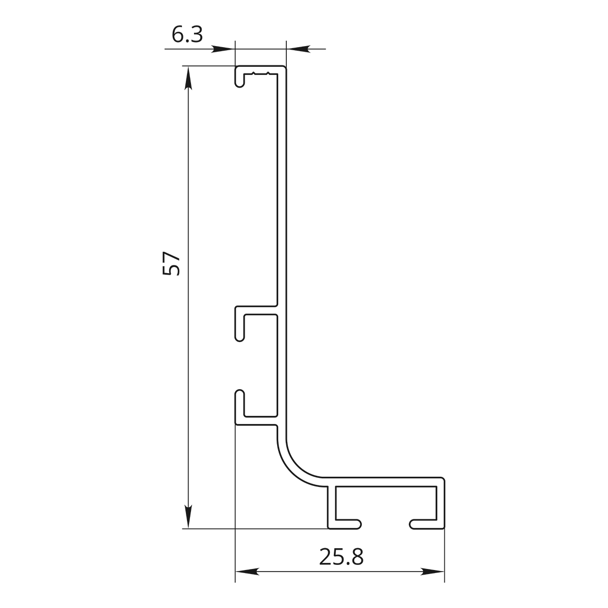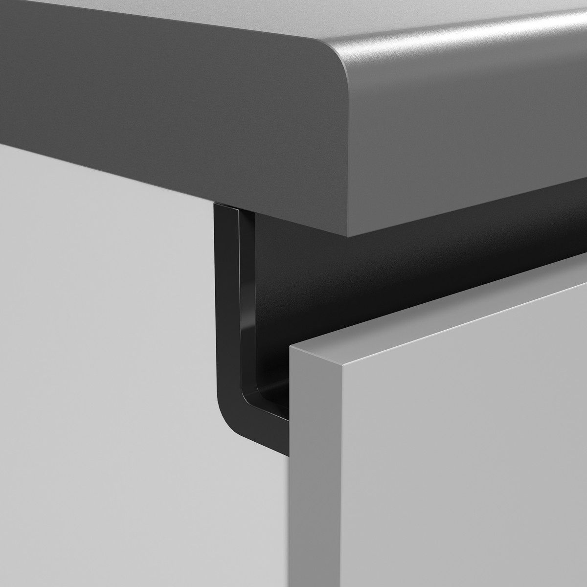 Профиль горизонтальный с одним закруглением, устанавливается в нижнюю кухонную базу под столешницу, между фасадами вертикально и горизонтально.