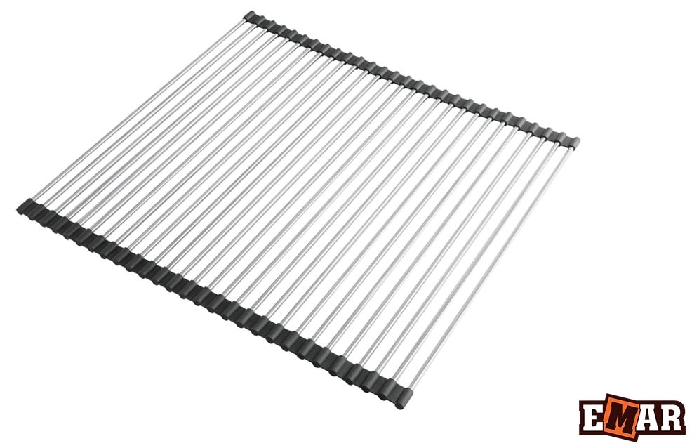 Стильные коврики «Ролл-мат» расстилаются на кухонных мойках или на столешнице. Используют для сушки овощей, посуды, а также для размещения горячих кастрюль и сковородок.