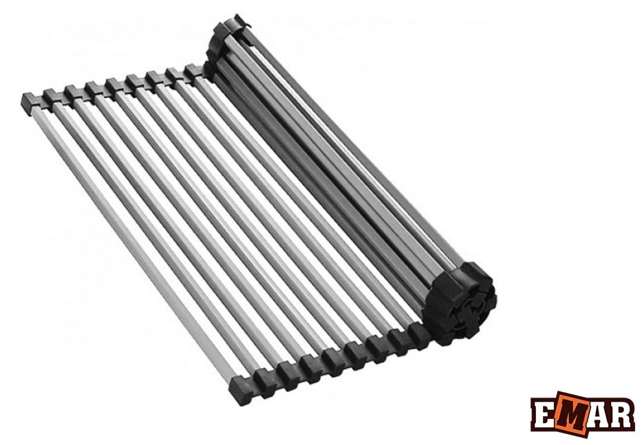 Стильные коврики «Ролл-мат» расстилаются на кухонных мойках или на столешнице. Используют для сушки овощей, посуды, а также для размещения горячих кастрюль и сковородок. Обеспечивают дополнительное рабочее пространство. Легко сворачиваются в компактный рулон и занимают мало места при хранении. Подходят для кухонных моек с шириной чаши до 420 мм.