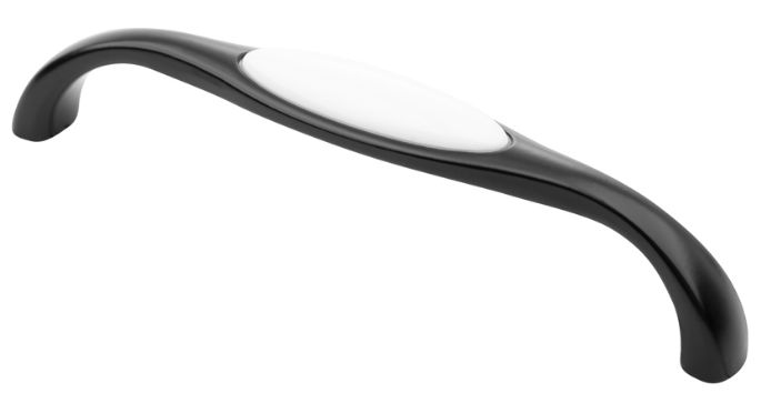 Ручка-скоба с фарфором, 128мм, матовый черный