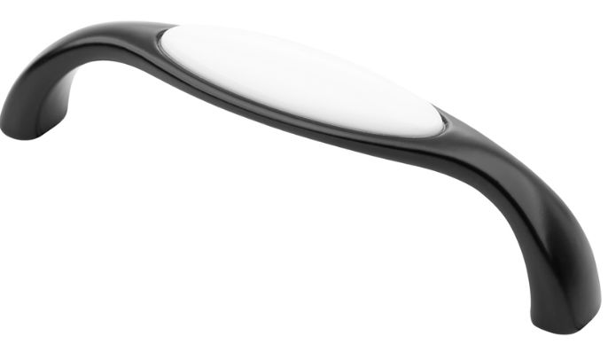 Ручка-скоба с фарфором, 96мм, матовый черный