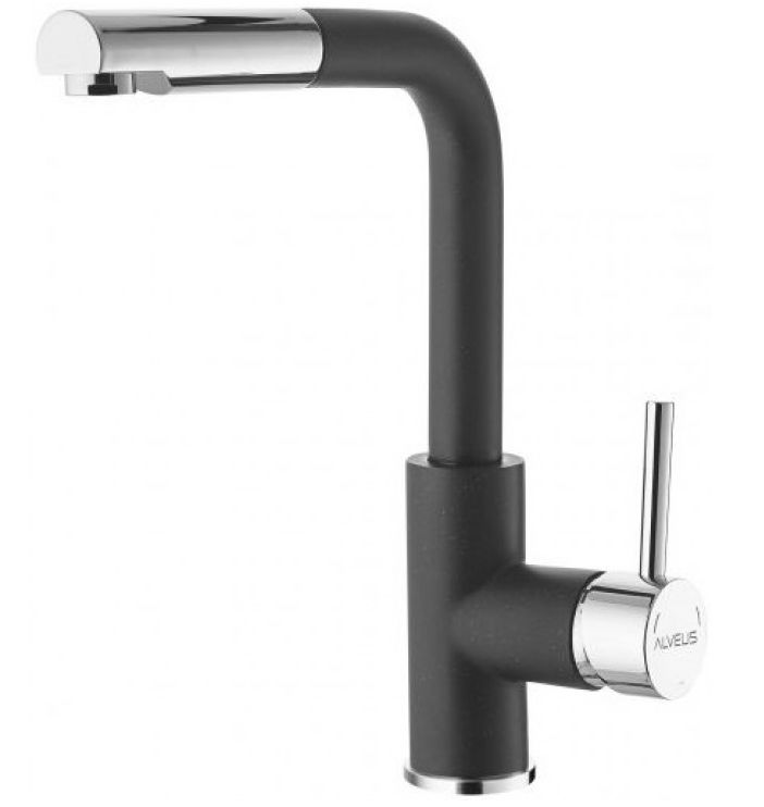 Alveus Siros-P Granital G91 Carbon - современный кухонный смеситель из латуни с двухцветным покрытием. Рычаг управления и выдвижная часть излива окрашены под хром, а корпус - под цвет моек Alveus Granital. Выдвижной излив с душем позволит значительно увеличить радиус действия и функциональность модели. Высокий излив обеспечит удобство при промывке и наполнении кастрюль. Керамический картридж и металлическая ручка гарантируют безупречную и длительную работу смесителя. Может быть установлен на кухонную мойку или столешницу.