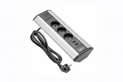 Удлинитель для офиса угловой, серый, три розетки, 2xUSB (Schucko)