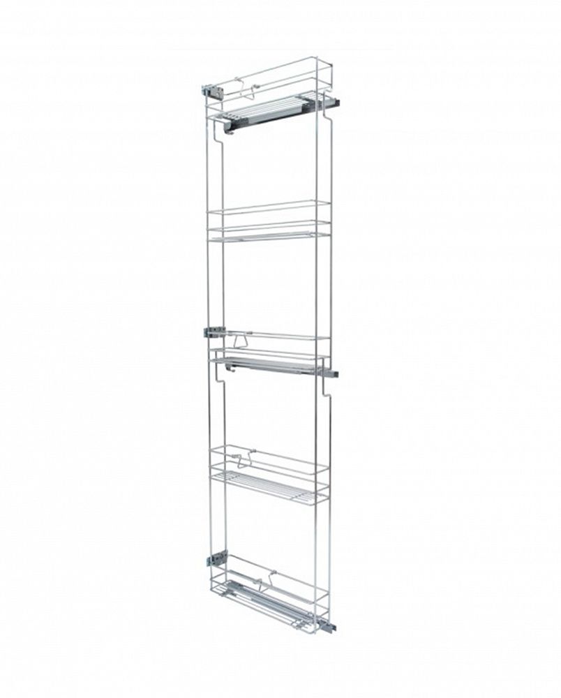 Комплектация: 1 рама колонны, 5 корзин с дном из прутка, 3 направляющие, 4 разделителя для бутылок, 3 крепления к фасаду.