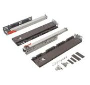 В комплекте: 1 комплект боковых панелей ящика (2 шт.), 1 комплект креплений задней стенки (2 шт.), 1 комплект креплений фасада (2 шт.), 1 комплект декоративных заглушек (2 шт.), 1 комплект направляющих полного выдвижения (2 шт.), 1 комплект клипс с регулировкой (2 шт.).