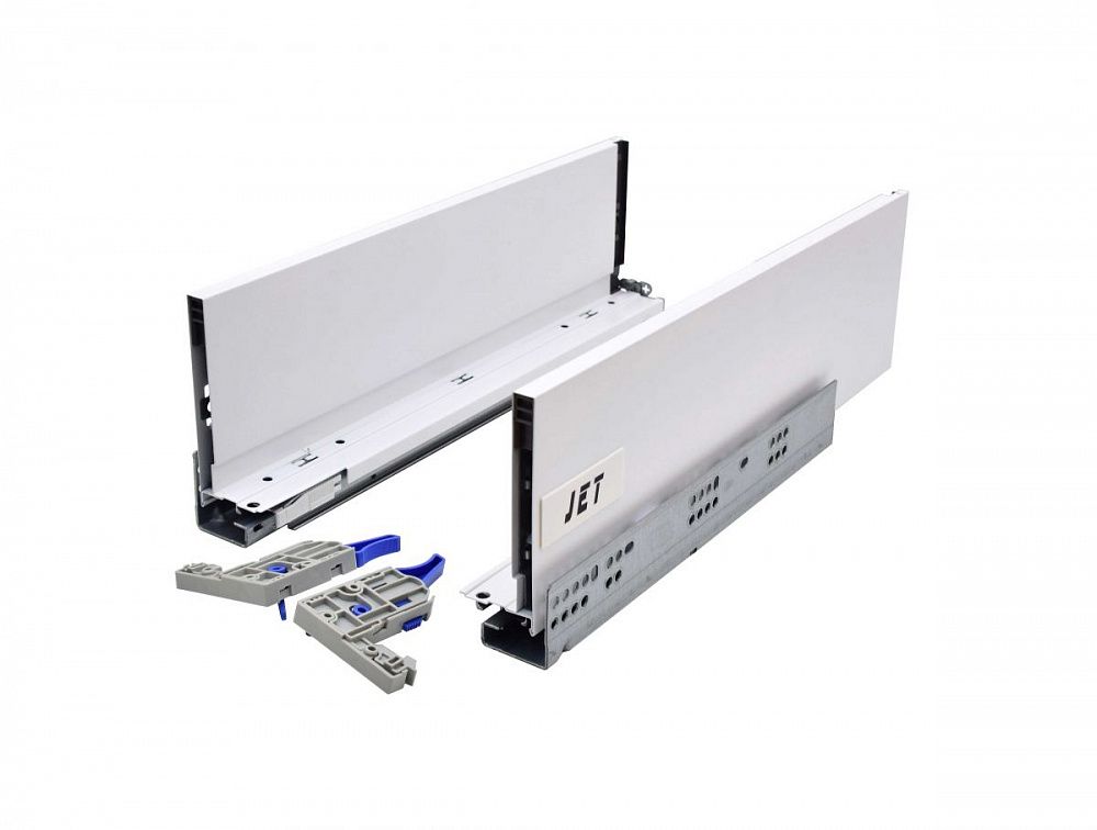 В комплекте: 1 комплект боковых панелей ящика (2 шт.), 1 комплект креплений задней стенки (2 шт.), 1 комплект креплений фасада (2 шт.), 1 комплект декоративных заглушек (2 шт.), 1 комплект направляющих полного выдвижения (2 шт.), 1 комплект клипс с регулировкой (2 шт.).