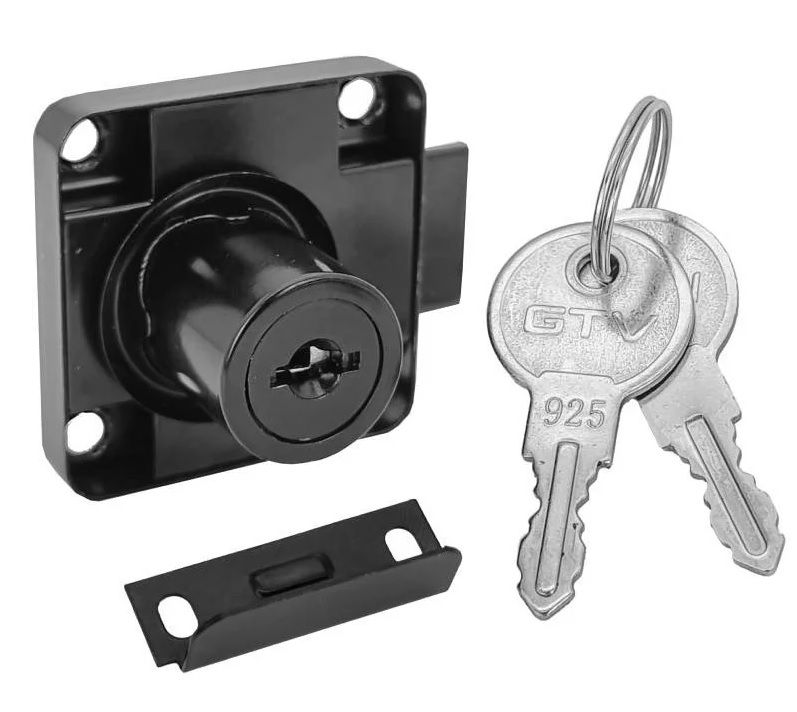 Замок мебельный №138 с планкой, простой (металлический) ключ. ЧЁРНЫЙ